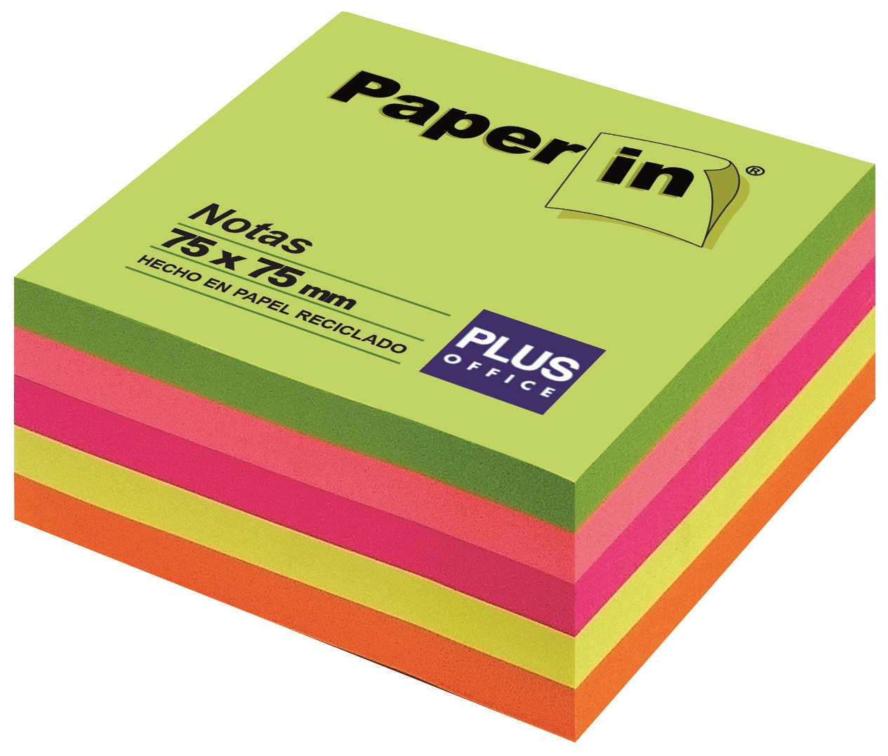 Bloc de Notas Cubo Adhesivas. Paper in 75x75. 300 Hojas 5 colores Neón