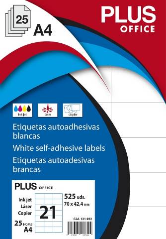 Etiquetas Autoadhesivas Formato Din A4 70,0 x 42,4mm. Plus Office 25 hojas