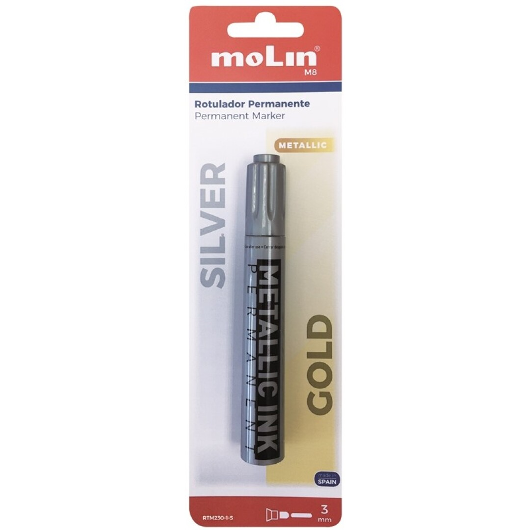 Rotulador metalizado Molin de 3mm. Blíster de 1 en color plata