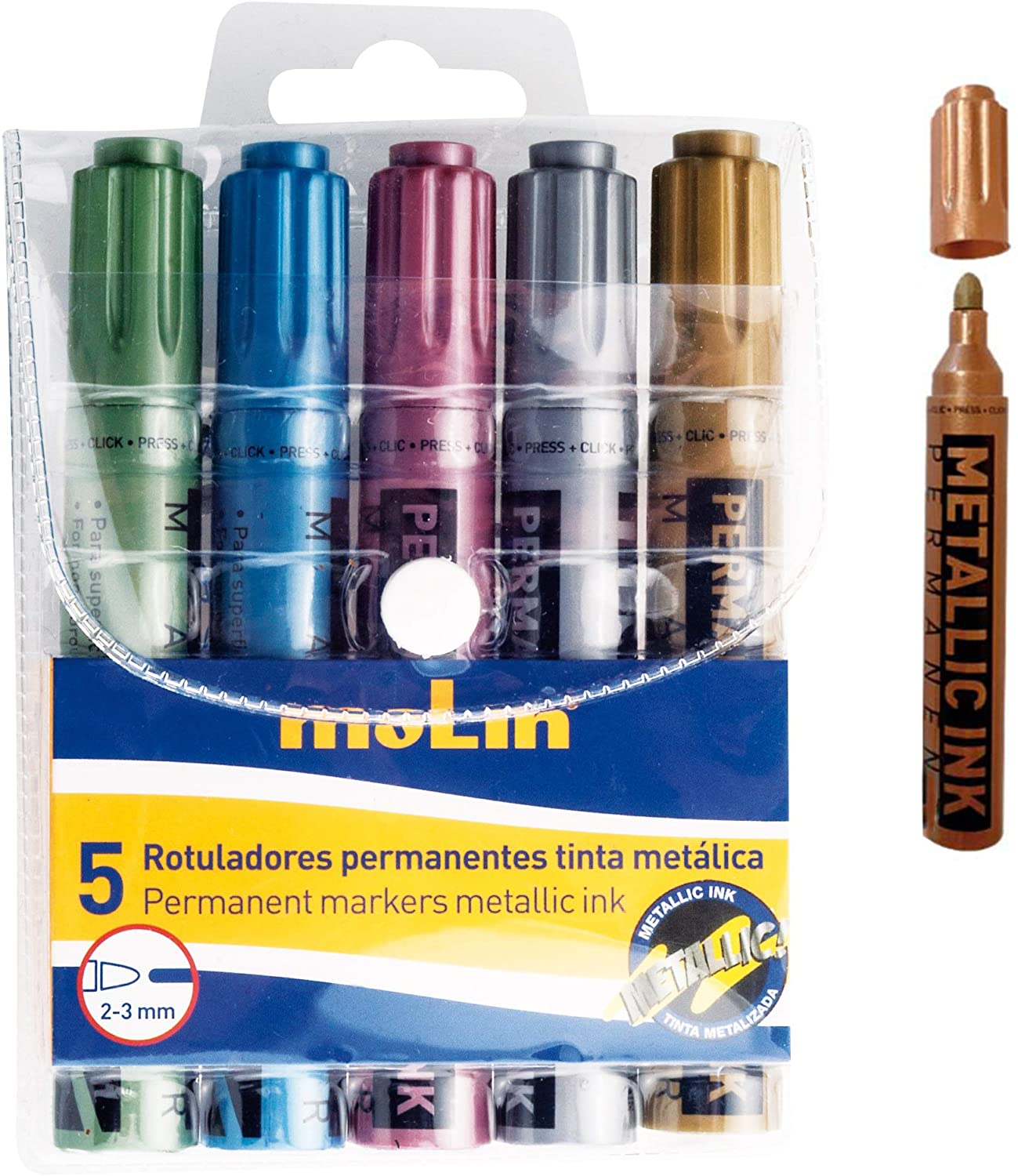 Rotulador metalizado Molin 2-3mm. Blíster de 5 unidades surtidos