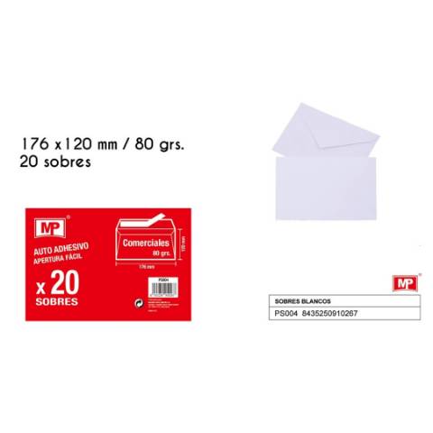Sobre Adhesivo 120x176 Comercial, Paquete de 20 Unidades. Blanco (128641)