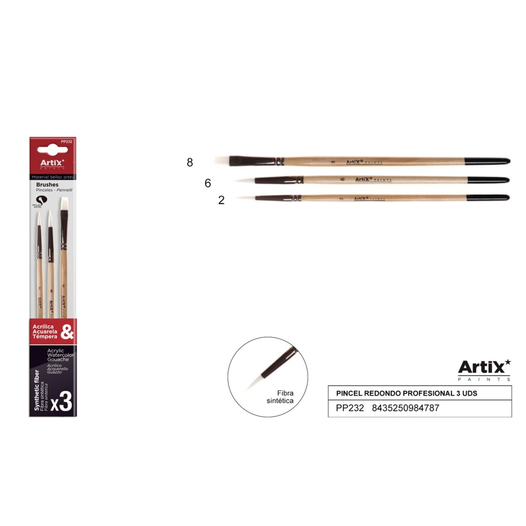 Pinceles Sinteticos Artix Nº 2,6,8 Blíster de 3 unidades. PP232 (128710)