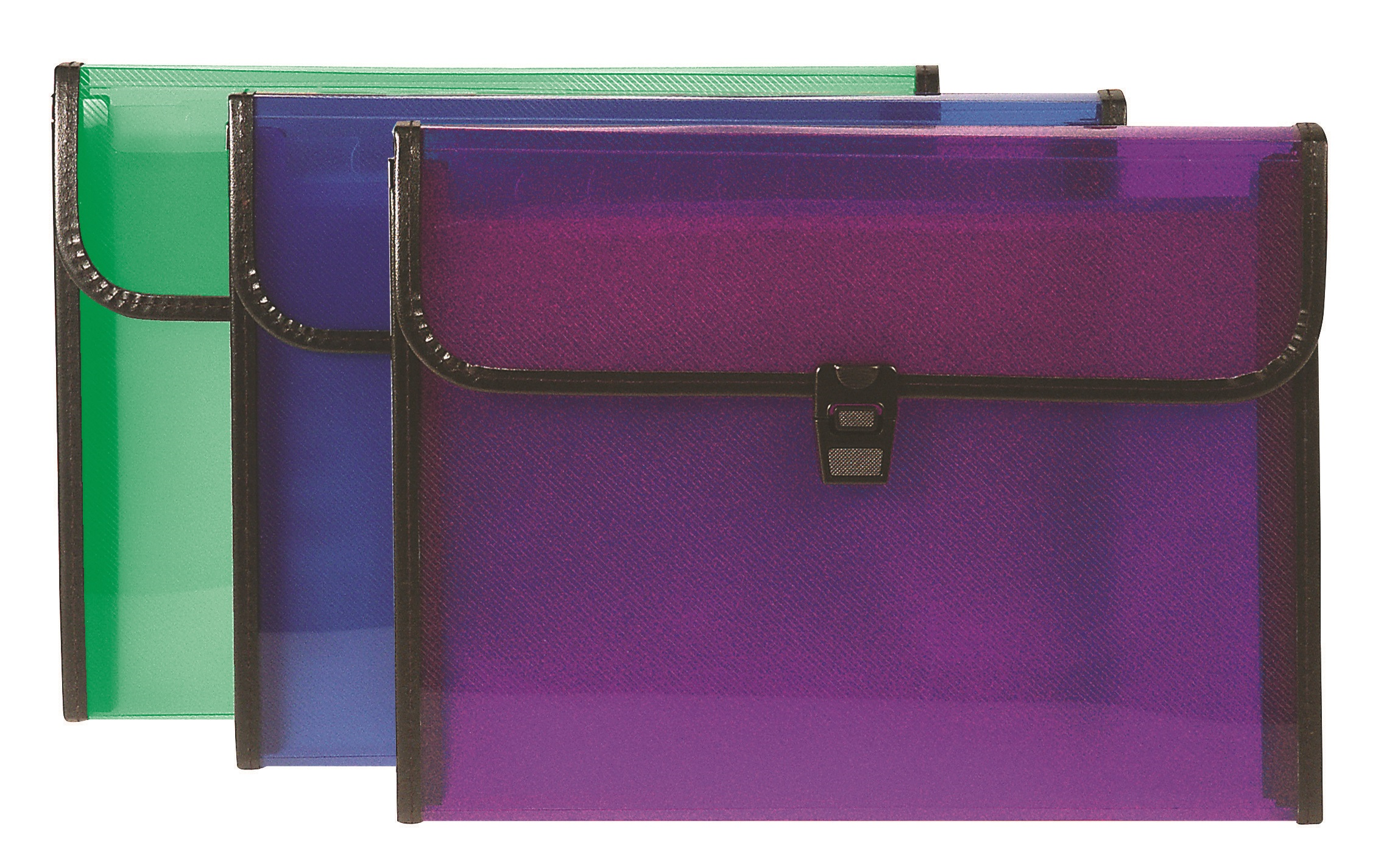 Clasificador de fuelle en polipropileno con 12 compartimentos, Formato Din A4, cierre con broche. Colores Traslúcidos