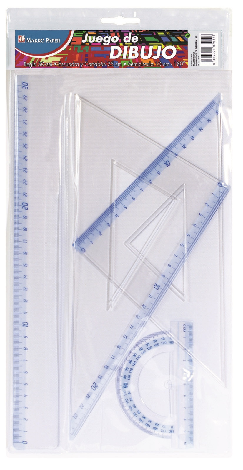 Juego de Reglas de 30 cm transparente. Carterilla con 4 piezas (600024)