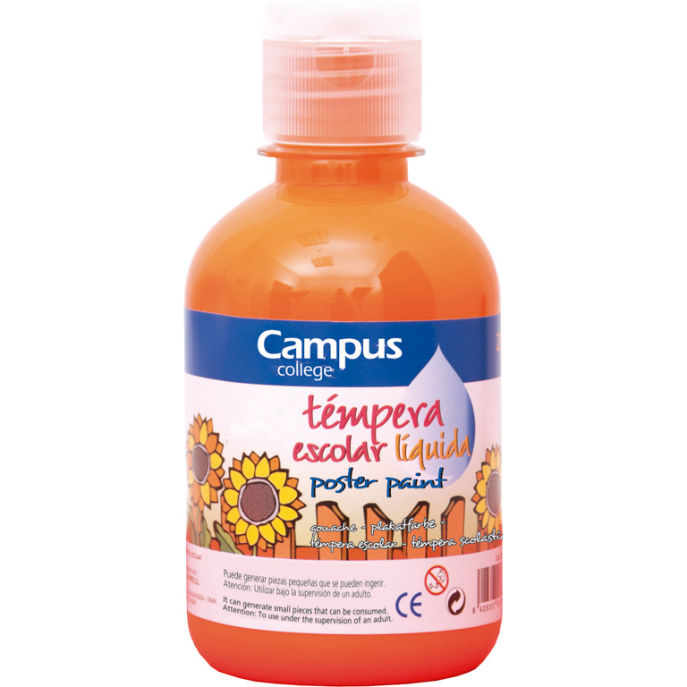 Témpera líquida escolar Campus 250 ml. Naranja (630571)