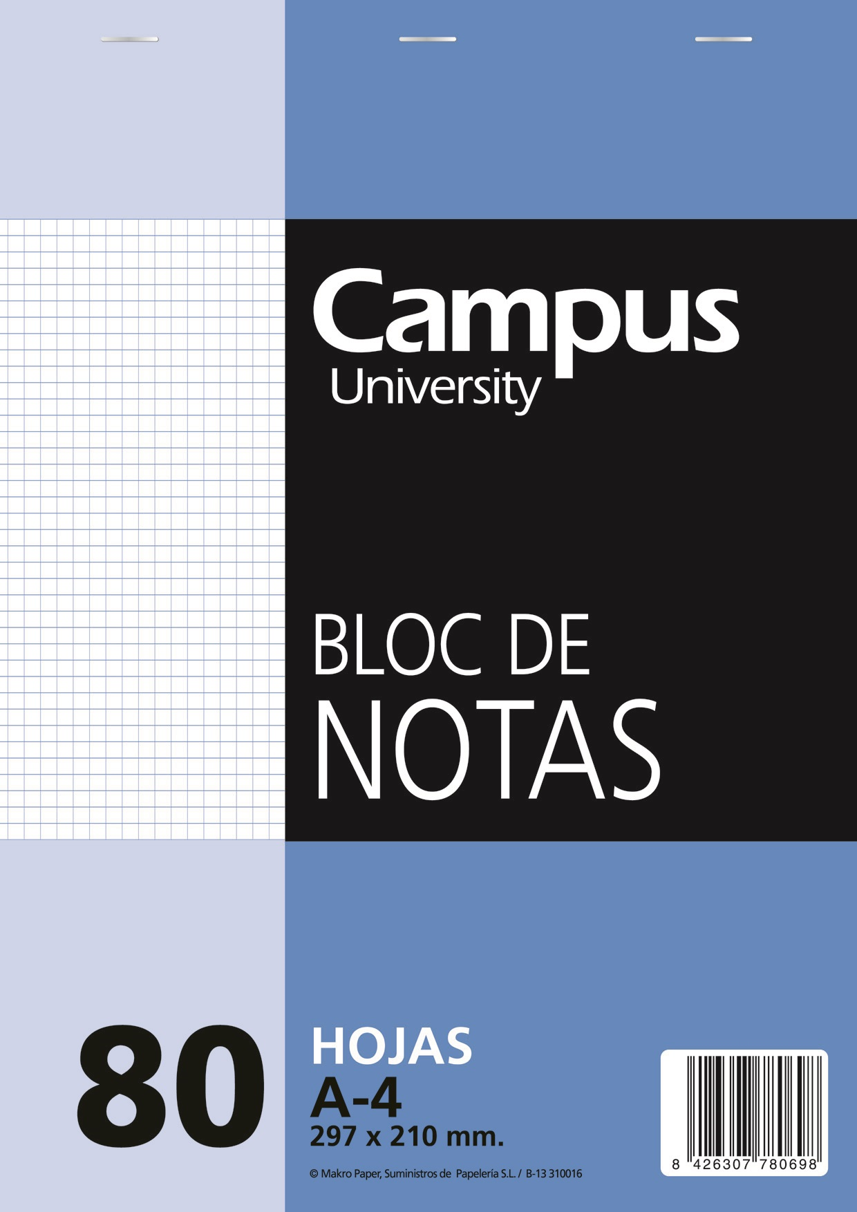 Cuaderno Bloc de Notas Microperforado, Formato Din A4, 80 Hojas en Cuadros 4x4 (001116)
