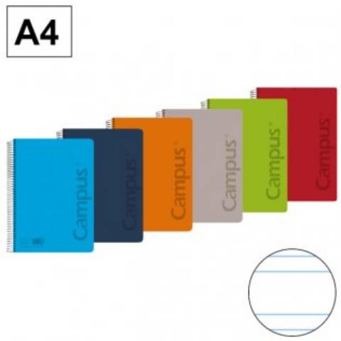Bloc Cuaderno de espiral tapa de Polipropileno 90 gr, Formato Din A4 con 80 hojas Natural. Campus, Doble raya Pauta 3,5