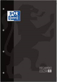 Recambio de papel DIN A4 de 90 gramos. De 4 Anillas. 80 hojas. Rayado Cuadro 5x5. Ribete Negro. Oxford.