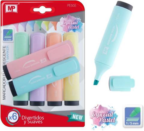 Rotulador Marcadores Fluorescentes MP Import. Blíster 6 colores pastel