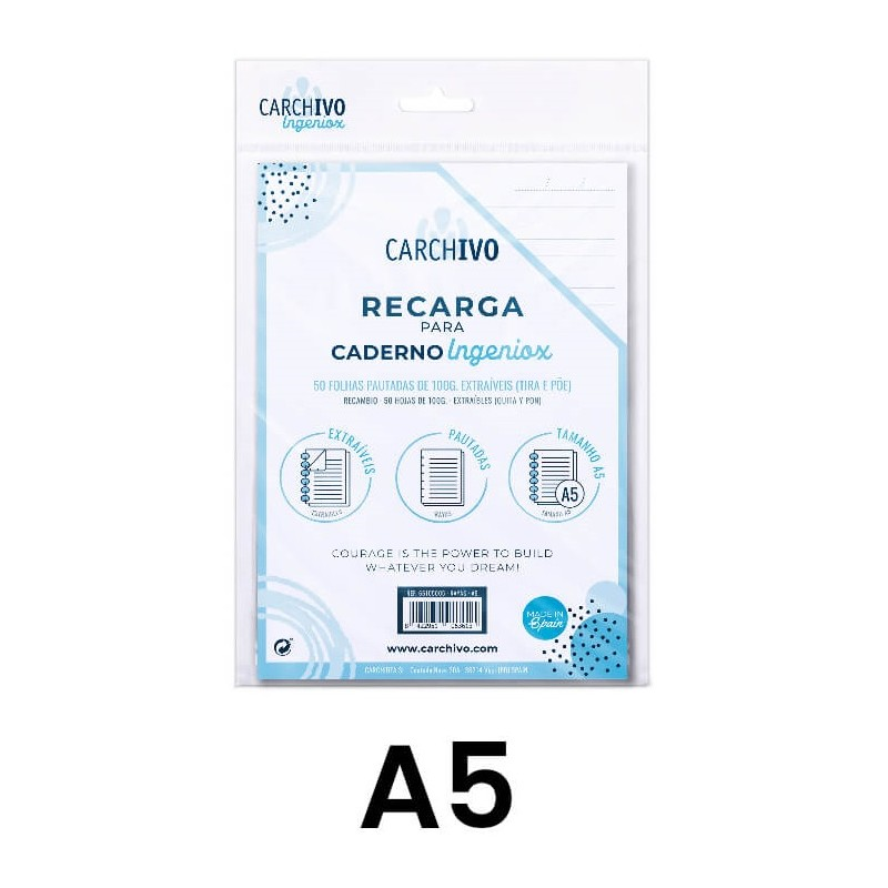 Recambio Cuaderno Ingeniox, crea tu propio cuaderno A5, 50 Hojas. Rayas