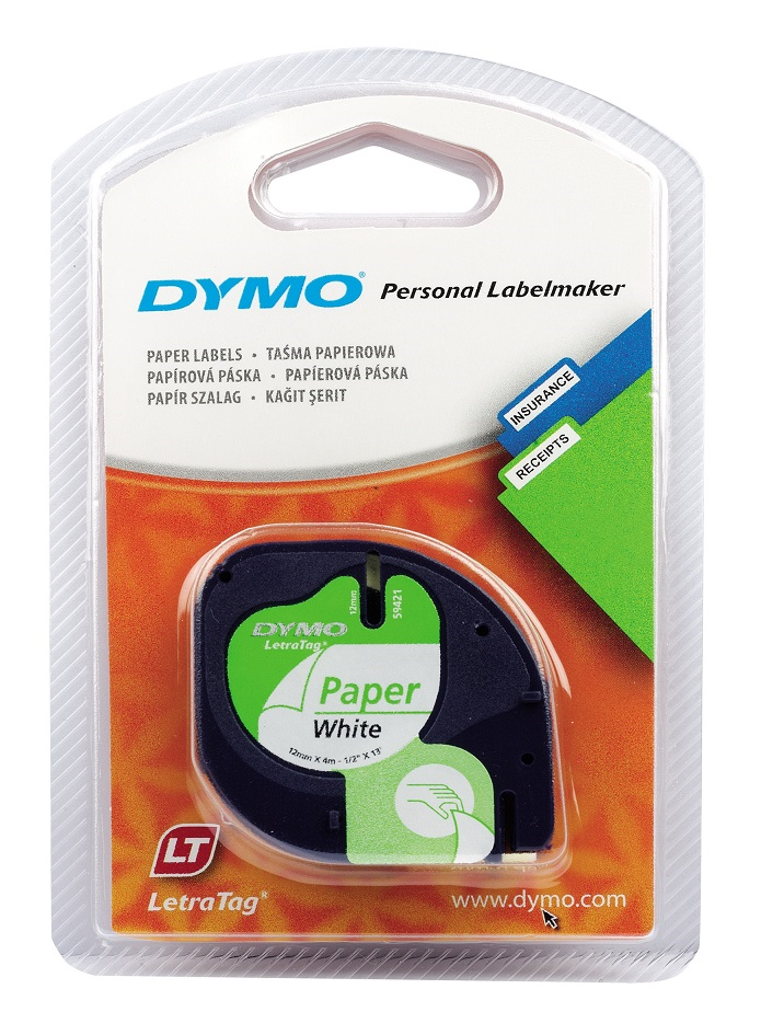 Cinta Dymo Letratag en papel de 12mm x 4 metros. 91200 Negro/Blanco (220287)